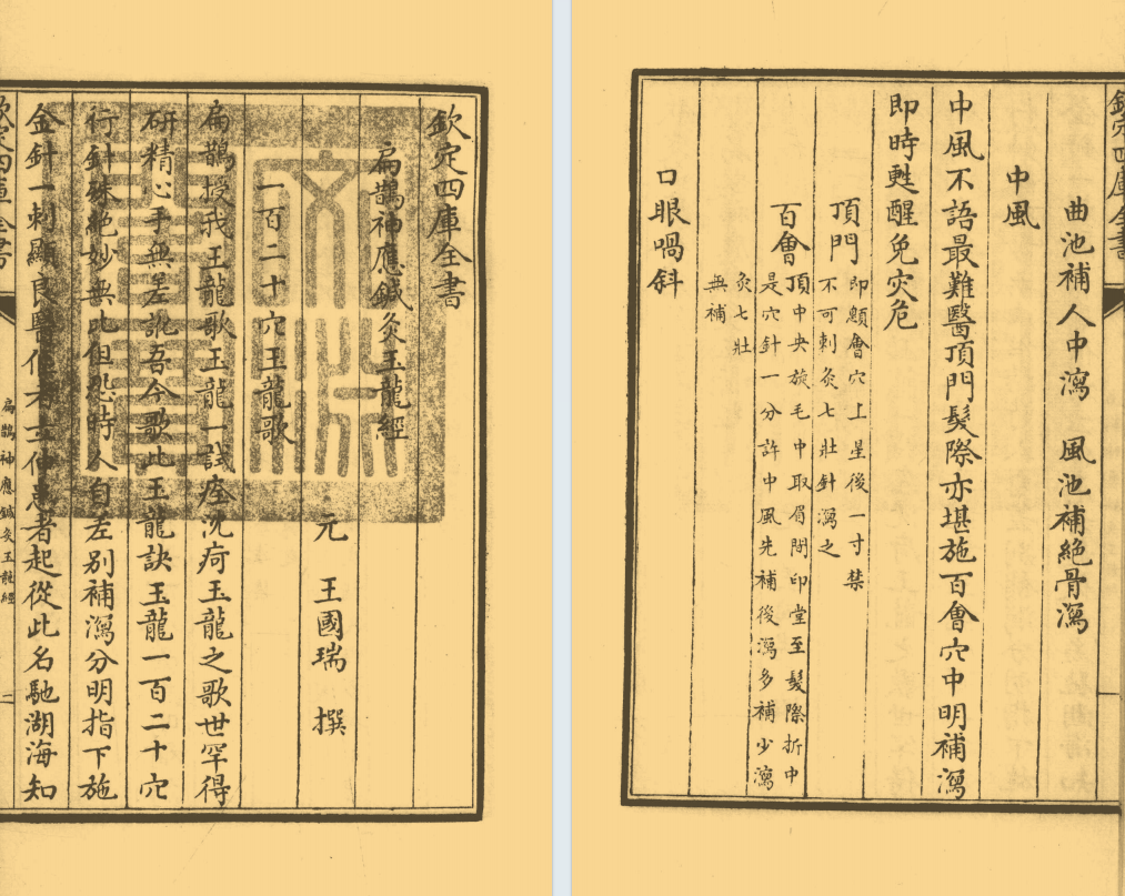 中医针灸古籍《扁鹊神应针灸玉龙经》四库版