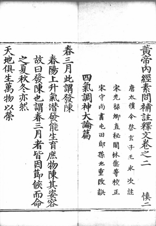 中医古籍《黄帝内经素问补注释文》王冰注林亿等校正