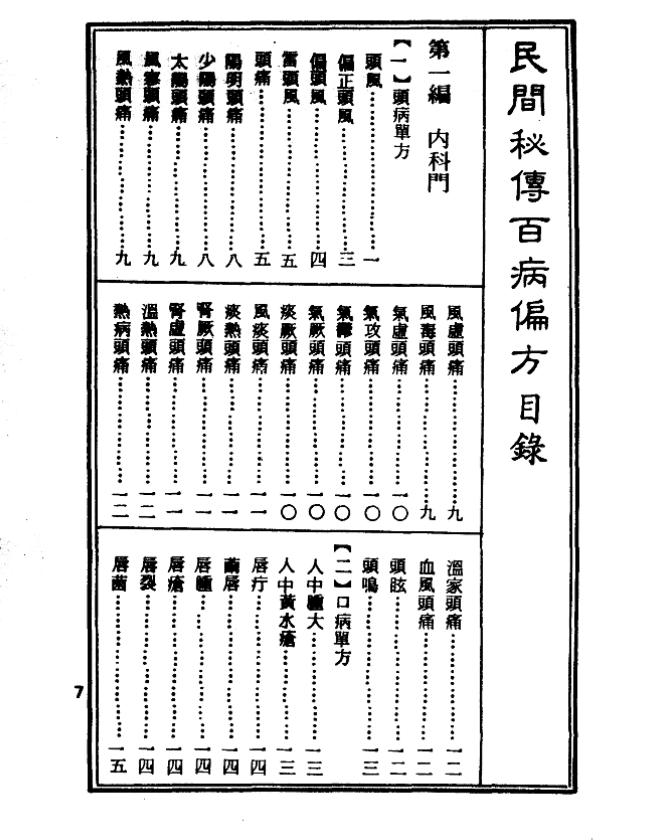 简介:《民间秘传百病偏方》 张宇翔编,台湾中医中药研究班,中医方书相关书籍。